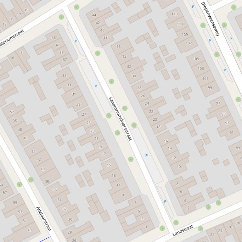 Op deze pagina vind je alle adressen van de Sanatoriumdwarsstraat en de data over diverse onderwerpen die voor de Sanatoriumdwarsstraat bekend zijn in grafieken en tabellen. De gebruikte gegevens zijn afkomstig van het Kadaster, de RVO en afgeleid van de postcodedata van het CBS.