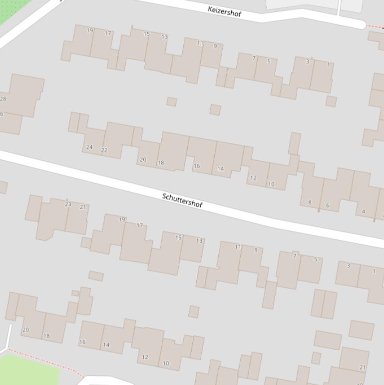 Bovenstaande tabel toont de 25 adressen van de Schuttershof. Dit zijn alle adressen op basis van de BAG data van het Kadaster van 1 januari 2026.