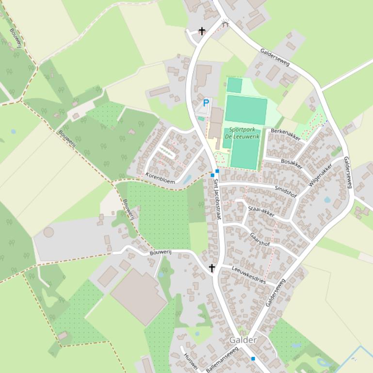 | Sint Jacobsstraat | 1 - b | 4855AK | Galder | Bijeenkomstfunctie Sportfunctie | 1.373 m2 | n.v.t. | 1969 | A | geen data | Weg |