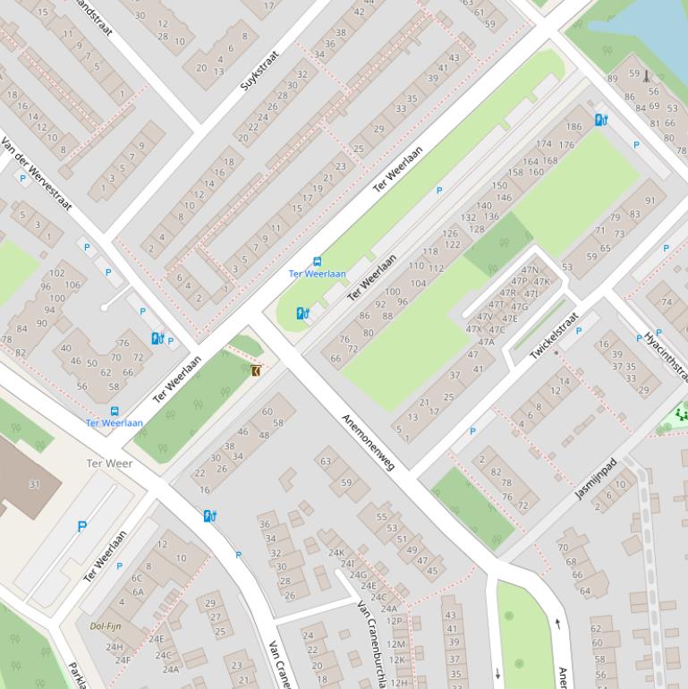Op deze pagina vind je alle adressen van de Ter Weerlaan en de data over diverse onderwerpen die voor de Ter Weerlaan bekend zijn in grafieken en tabellen. De gebruikte gegevens zijn afkomstig van het Kadaster, de RVO en afgeleid van de postcodedata van het CBS.