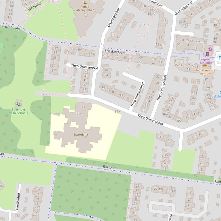 De Theo Driessenhof in Helmond heeft 4 postcodes, te weten: 5709BA, 5709BB, 5709BD en 5709BE. Deze weg heeft de huisnummerreeks 1 t/m 96. Weg Theo Driessenhof ligt in de buurt Rijpelberg-Oost binnen de gemeente Helmond.