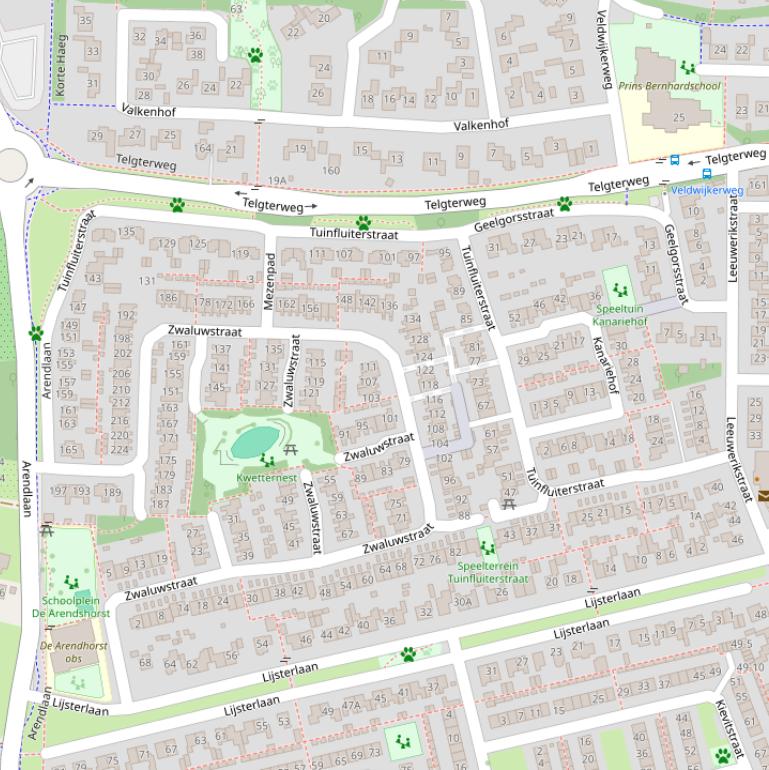 De Tuinfluiterstraat in Ermelo heeft adressen met 6 verschillende postcodes. Deze postcodes lopen van 3853WB tot en met 3853WH. De tabel met adressen op deze pagina toont alle adressen met alle postcodes van Tuinfluiterstraat in Ermelo. Deze weg heeft de huisnummerreeks 1 t/m 165. Weg Tuinfluiterstraat ligt in de buurt Ermelo - West binnen de gemeente Ermelo.