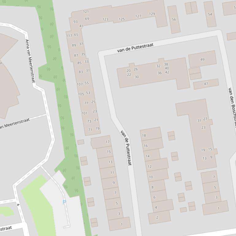 Op deze pagina vind je alle adressen van van de Puttestraat en de data over diverse onderwerpen die voor van de Puttestraat bekend zijn in grafieken en tabellen. De gebruikte gegevens zijn afkomstig van het Kadaster, de RVO en afgeleid van de postcodedata van het CBS.
