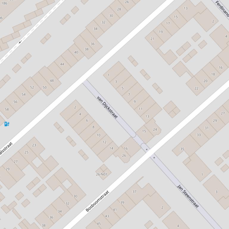 Op deze pagina vind je alle adressen van de van Dijckstraat en de data over diverse onderwerpen die voor de van Dijckstraat bekend zijn in grafieken en tabellen. De gebruikte gegevens zijn afkomstig van het Kadaster, de RVO en afgeleid van de postcodedata van het CBS.