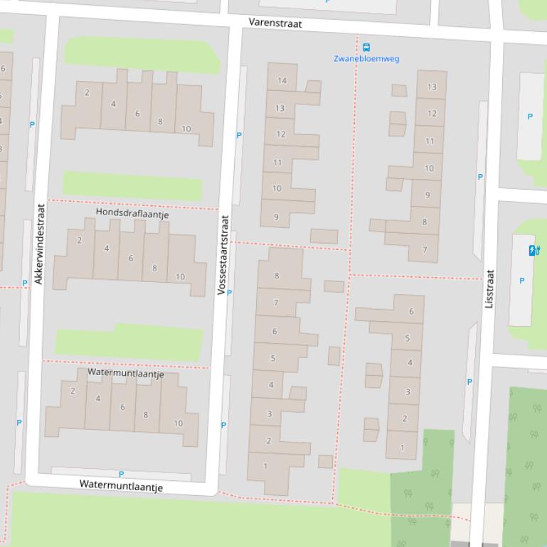 Op deze pagina vind je alle adressen van de Vossestaartstraat en de data over diverse onderwerpen die voor de Vossestaartstraat bekend zijn in grafieken en tabellen. De gebruikte gegevens zijn afkomstig van het Kadaster, de RVO en afgeleid van de postcodedata van het CBS.