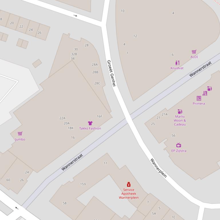 | Wannerstraat | 12 | 6413EV | Heerlen | Bijeenkomstfunctie Winkelfunctie | 1.074 m2 | n.v.t. | 2010 | A | geen data | Weg |