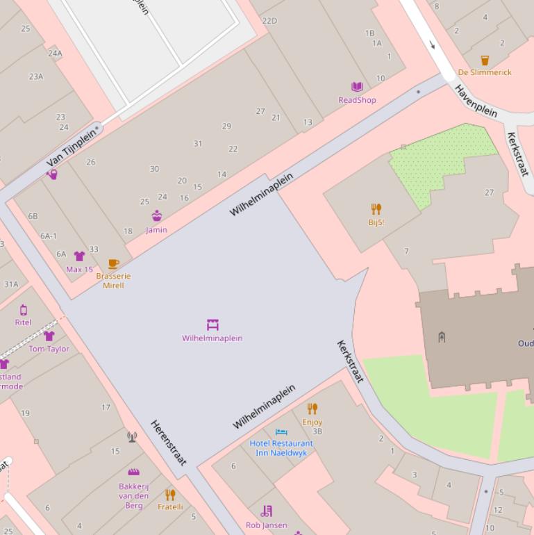 | Wilhelminaplein | 3 | 2671GR | Naaldwijk | Bijeenkomstfunctie | 125 m2 | n.v.t. | 1920 | geen data | geen data | Weg |