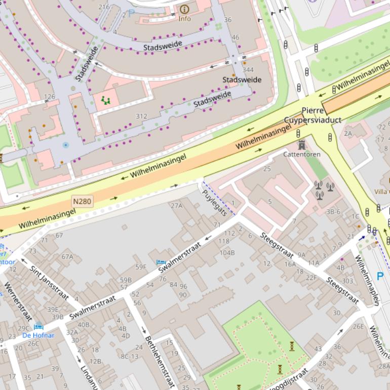 Op deze pagina vind je alle adressen van de Wilhelminasingel en de data over diverse onderwerpen die voor de Wilhelminasingel bekend zijn in grafieken en tabellen. De gebruikte gegevens zijn afkomstig van het Kadaster, de RVO en afgeleid van de postcodedata van het CBS.