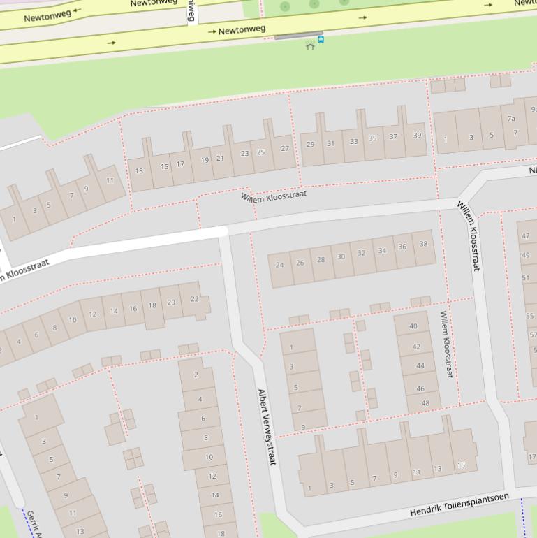 Op deze pagina vind je alle adressen van de Willem Kloosstraat en de data over diverse onderwerpen die voor de Willem Kloosstraat bekend zijn in grafieken en tabellen. De gebruikte gegevens zijn afkomstig van het Kadaster, de RVO en afgeleid van de postcodedata van het CBS.