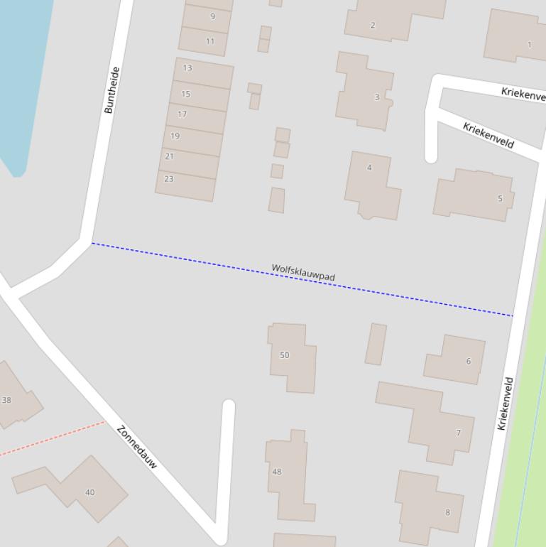 | Wolfsklauwpad | geen postcode | geen data | n.v.t. | geen data | geen data | geen data | Weg |