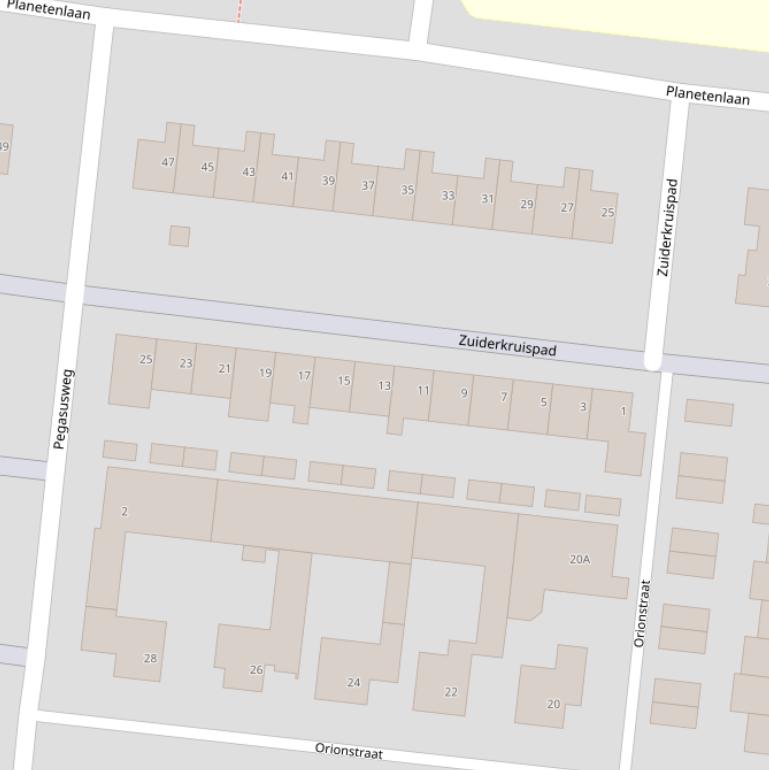 Bovenstaande tabel toont de 13 adressen van het Zuiderkruispad. Dit zijn alle adressen op basis van de BAG data van het Kadaster van 1 januari 2026.