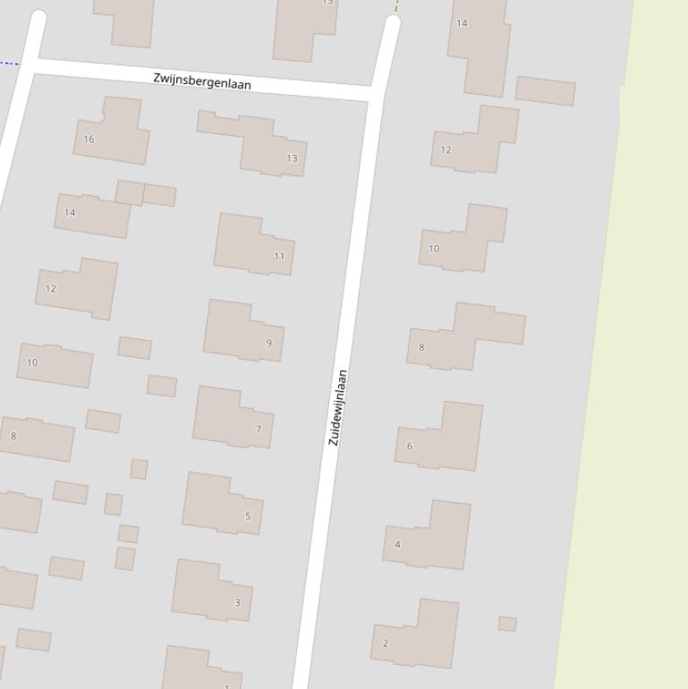 Bovenstaande tabel toont de 15 adressen van de Zuidewijnlaan. Dit zijn alle adressen op basis van de BAG data van het Kadaster van 1 januari 2026.